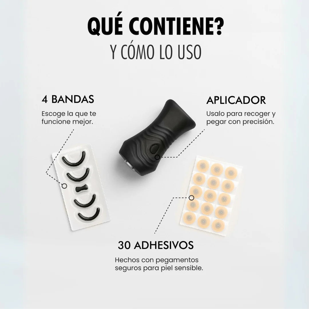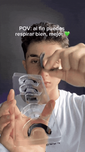 Inserta suavemente el puente con los puntitos magnéticos fuera de tus fosas nasales hasta que encaje cómodo. Ajusta para que quede bien posicionado y puedas respirar libremente. Úsalo mientras duermes o entrenas y retíralo jalando suavemente hacia afuera.